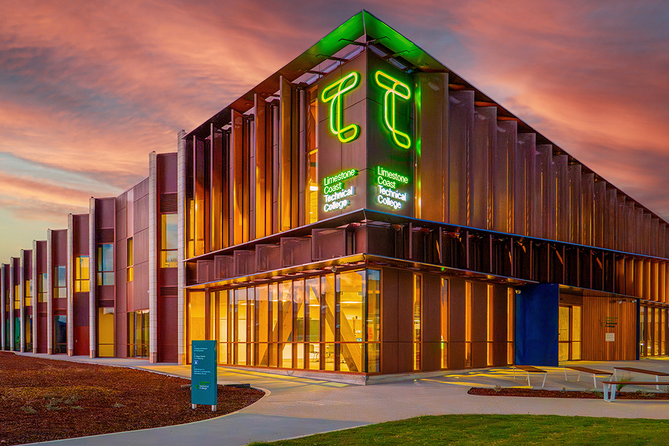 Recently completed for the Department of Education in SA, the Limestone Coast Technical College prepares school students for careers in primary industries, trades, health and education in the Limestone Coast region, with training designed to directly meet demand within the local region for employable skills, with graduates going into apprenticeships, employment or further study. It will offer students from Year 10 through to Year 12 an alternative career pathway way to still be able to achieve their SACE and offers short term accomodation for students outside of Mt Gambier to be able to access the programmes.