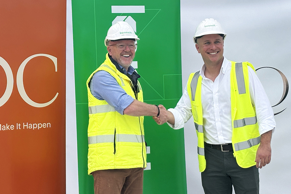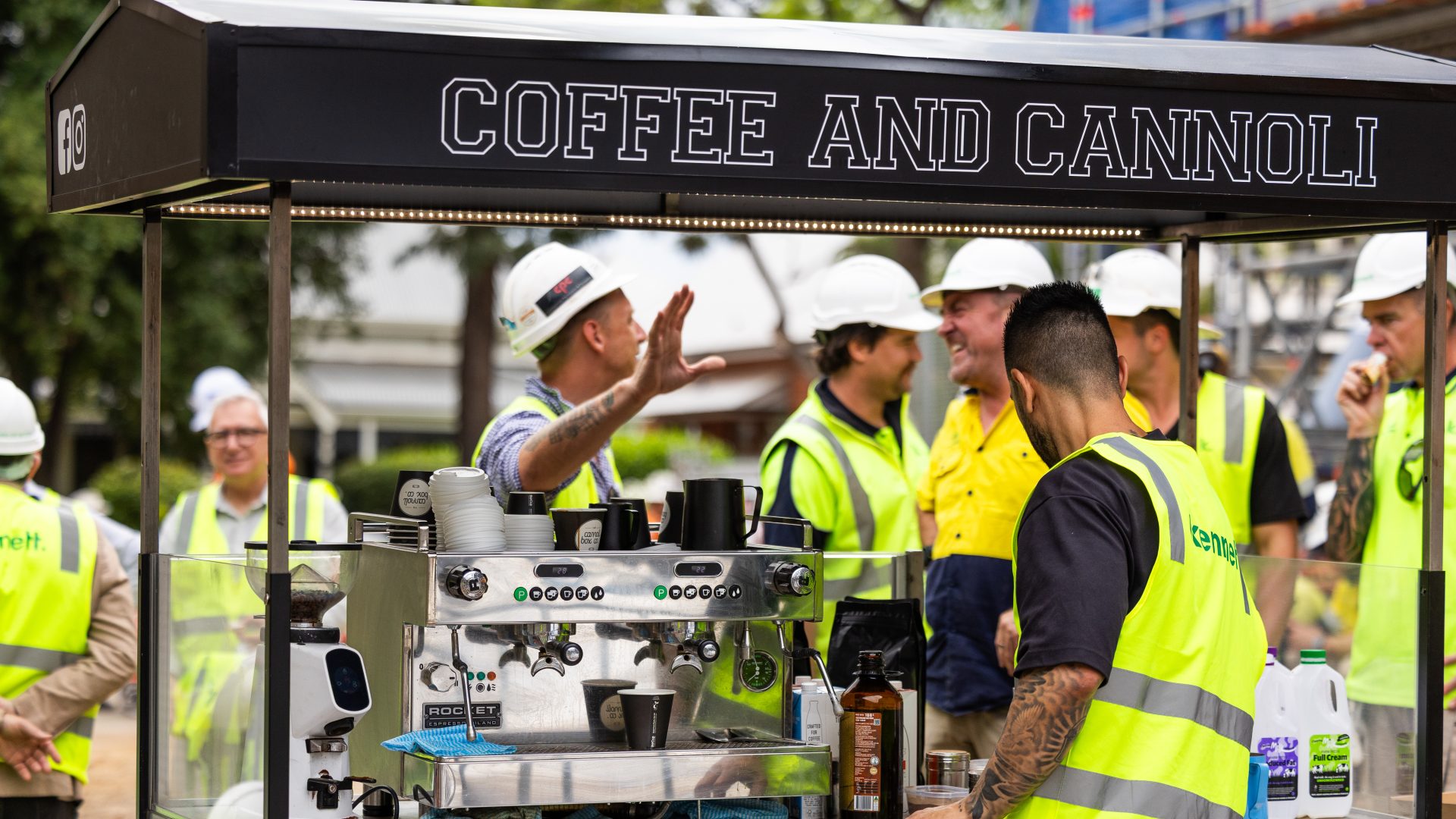 A small ceremony, including the lifting of the “construction tree” to the top level, was held to celebrate this significant milestone. Rooted in ancient Scandinavian tradition, the tree serves as a good luck charm for future occupants, an acknowledgement of safe completion of the building’s skeleton as well as a nod to nature. Subcontractors on site enjoyed coffee and cannoli while speeches were given by our client, Cap Pru and James Kennett.