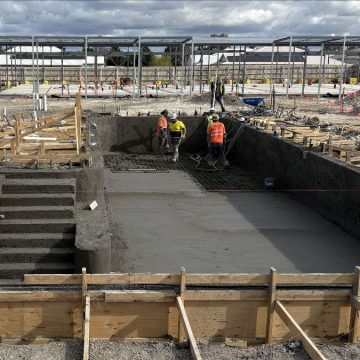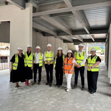 Emily Bourke, Minister for Infrastructure and Will Frogley, CEO of the MBA visit Uniting on Second in it's closing stages of construction.